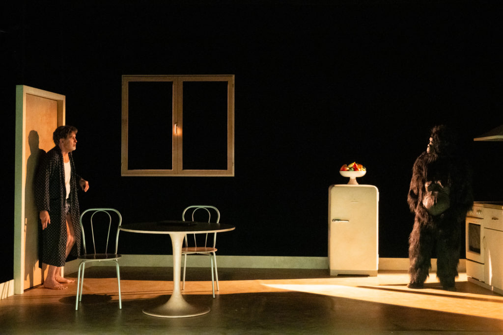 De révélations en aveux, d’injustes invectives en médiocres négociations, la situation dégénère. Et quand un mystérieux gorille apparaît sur leurs écrans, leur vie bascule définitivement dans l’absurde…